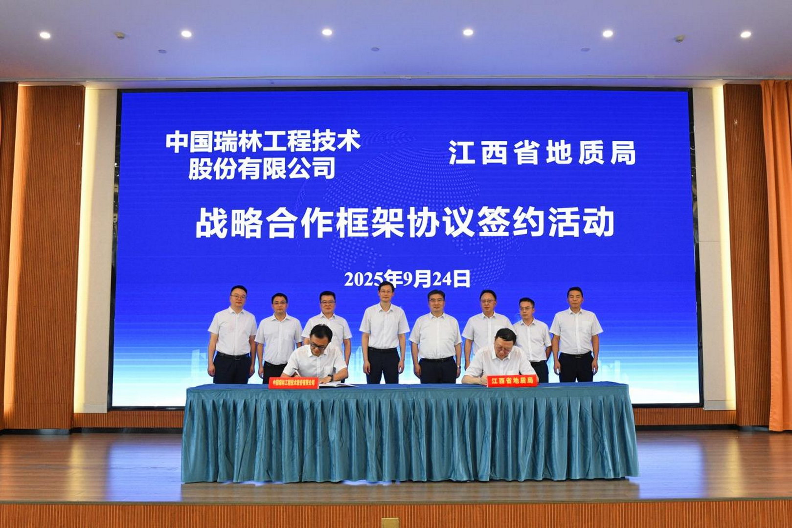 9月24日,中國(guó)瑞林工程技術(shù)股份有限公司(以下簡(jiǎn)稱(chēng)“中國(guó)瑞林”)與江西省地質(zhì)局(以下簡(jiǎn)稱(chēng)“省地質(zhì)局”)簽訂戰(zhàn)略合作框架協(xié)議。中國(guó)瑞林黨委書(shū)記、總經(jīng)理吳潤(rùn)華,省自然資源廳黨組成員、省地質(zhì)局黨組書(shū)記饒清華出席儀式并致辭,中國(guó)瑞林黨委委員、副總經(jīng)理劉奕與省地質(zhì)局黨組成員、副局長(zhǎng)吳俊華代表雙方簽約。